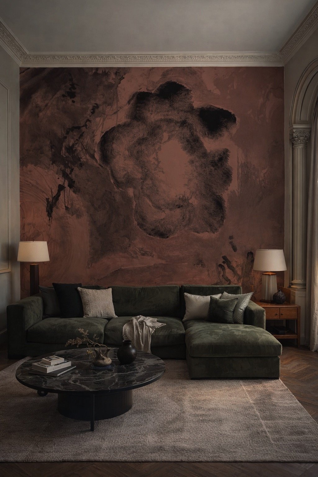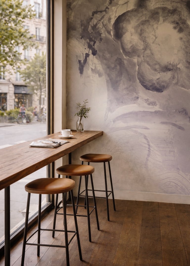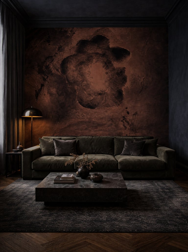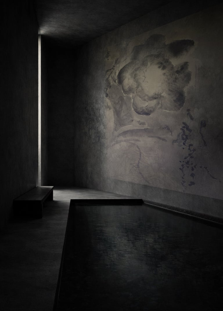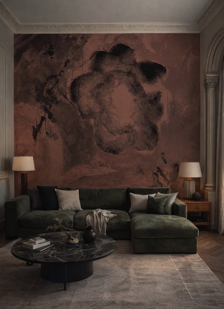 A working notebook of spatial experiments in wallpaper murals and interior surfaces. Observing how colour, pattern and material quietly shape a room.