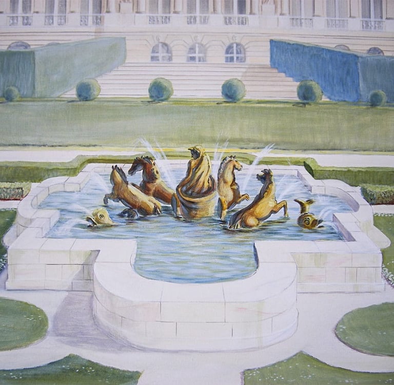 The Apollo Fountain, painted in joyfully. A touch of whimsy in a "royal" nursery