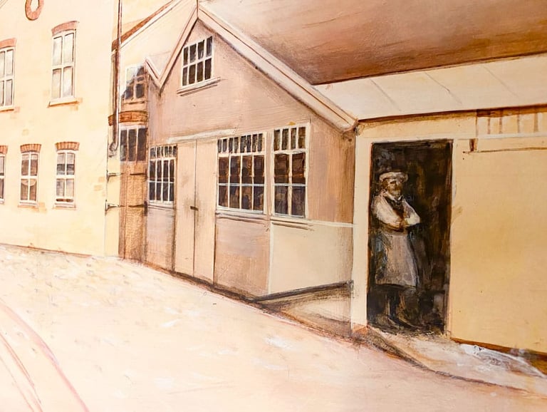 The original brewery buildings, painted from archival photographs